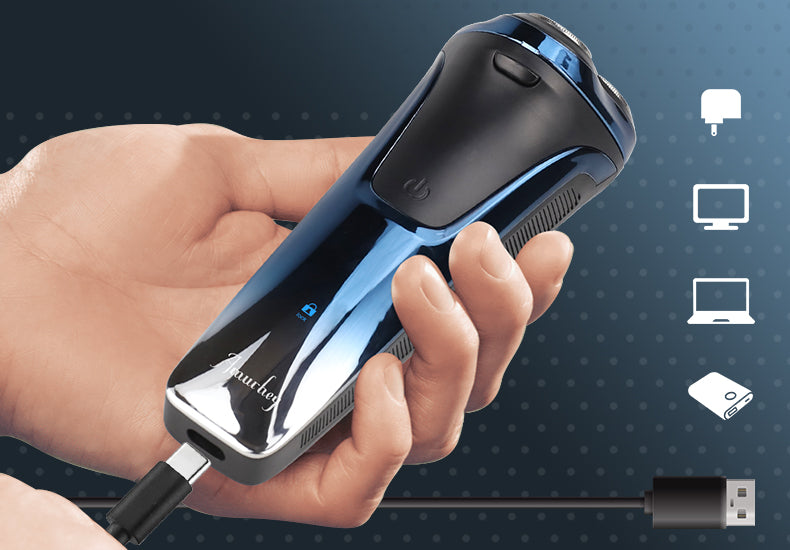 Sie können diesen Rasierer mit jeder Standard-5V/1A-Quelle aufladen, wie zum Beispiel einem USB-Anschluss am Computer, einer Powerbank oder einem Autoladegerät.