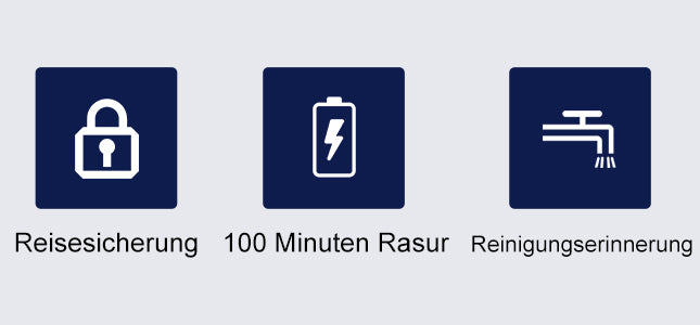 Drücken Sie die Ein-/Aus-Taste für 3 Sekunden, um den Rasierer zu sperren und unbeabsichtigtes Einschalten zu verhindern.