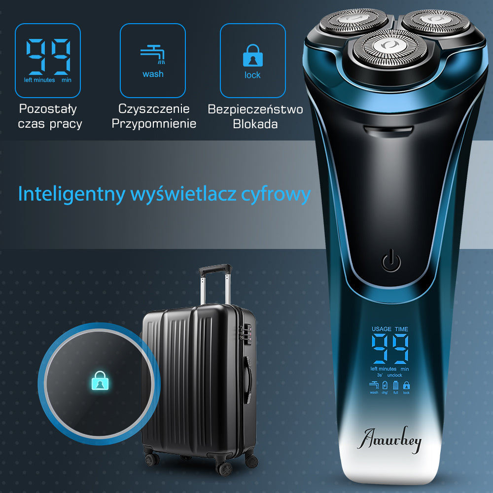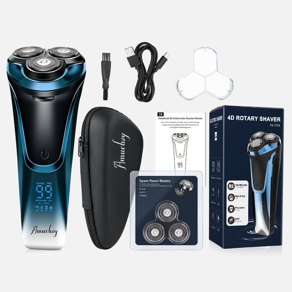 Golarka męska Amurhey FK375S Pro: Elektryczna golarka do golenia na sucho i na mokro, w zestawie z etui do przechowywania i 3 wymiennymi ostrzami.