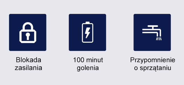 Naciśnij przycisk włączania/wyłączania na 3 sekundy, aby zablokować golarkę i zapobiec jej przypadkowemu uruchomieniu.